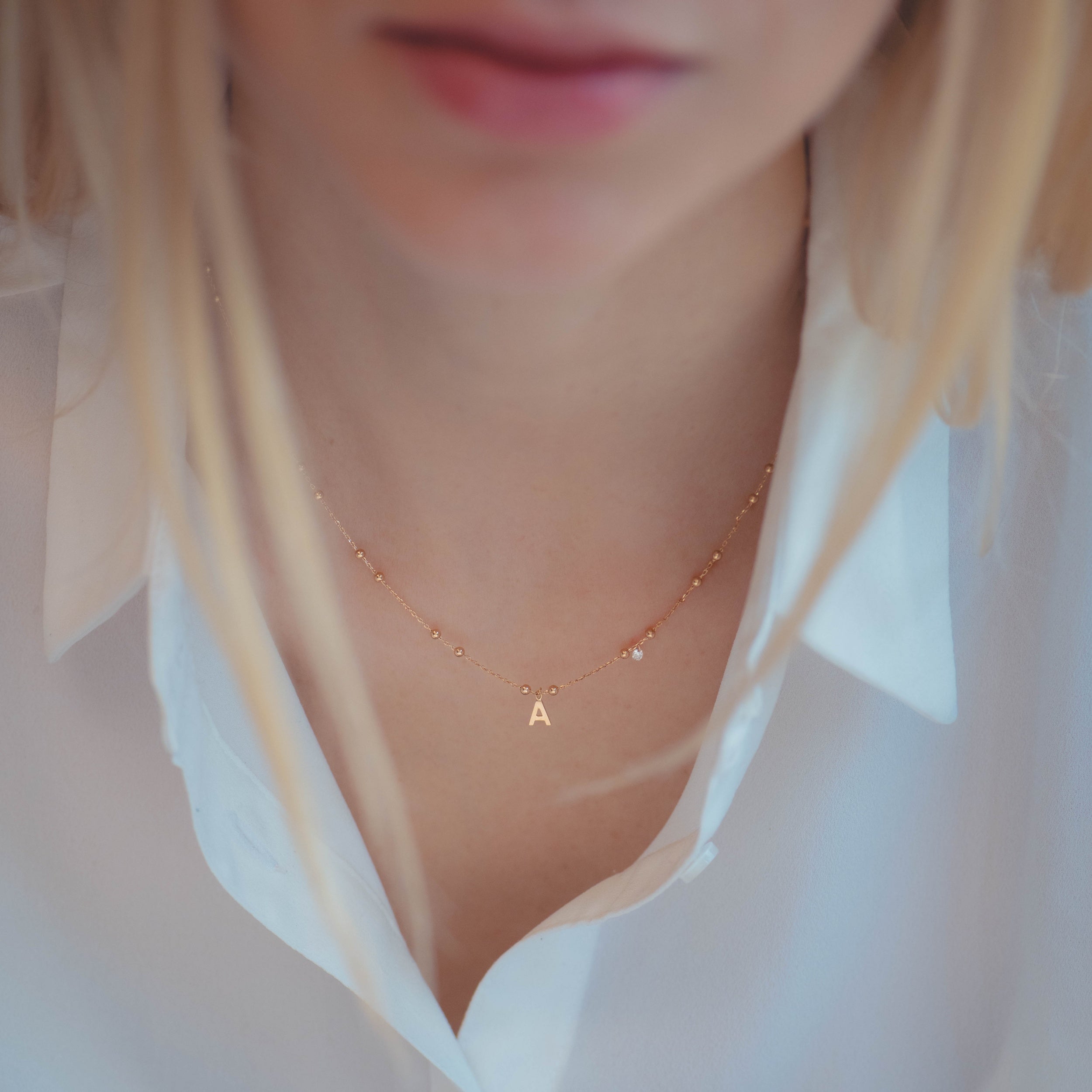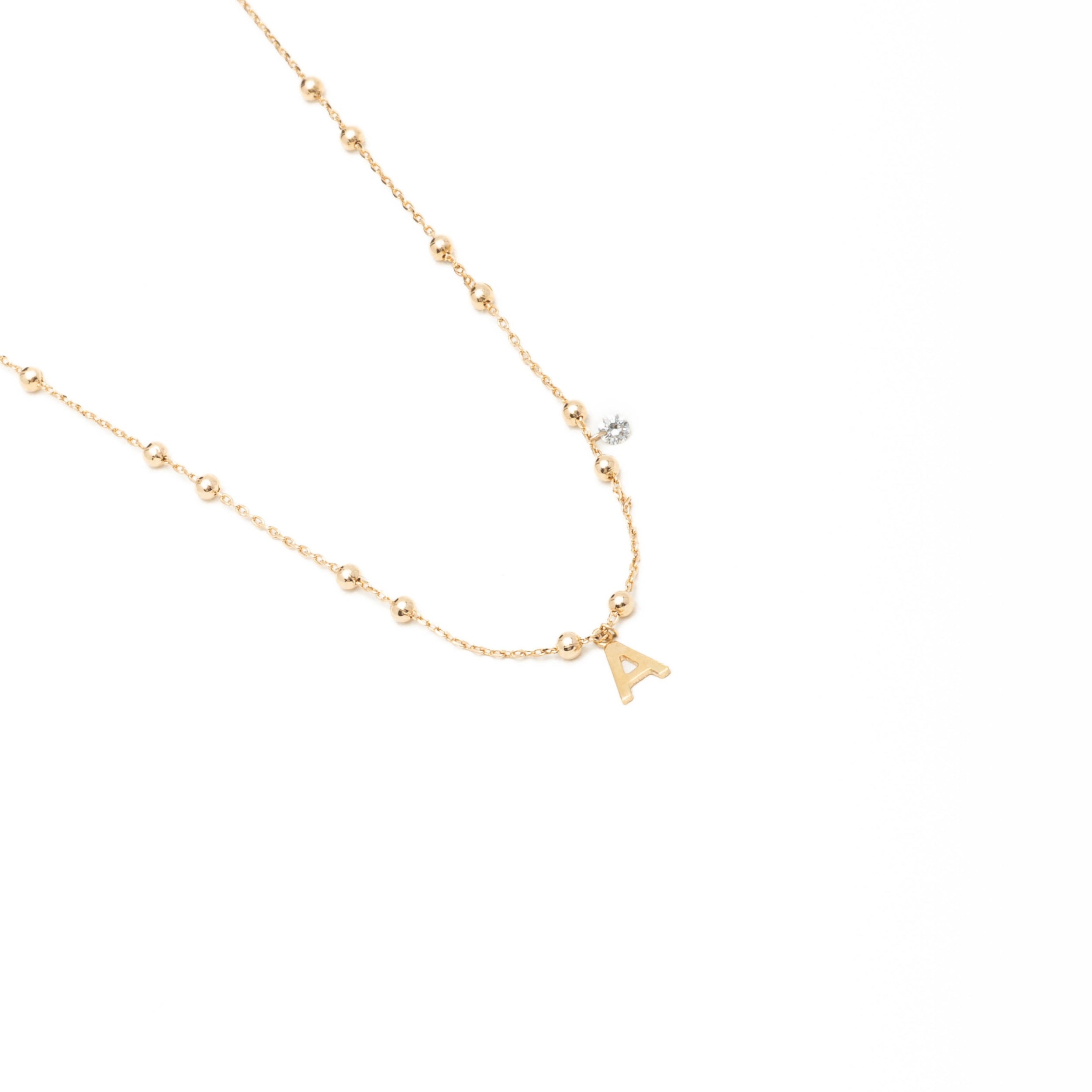 Collier perlé, Initiale Or jaune et Diamant